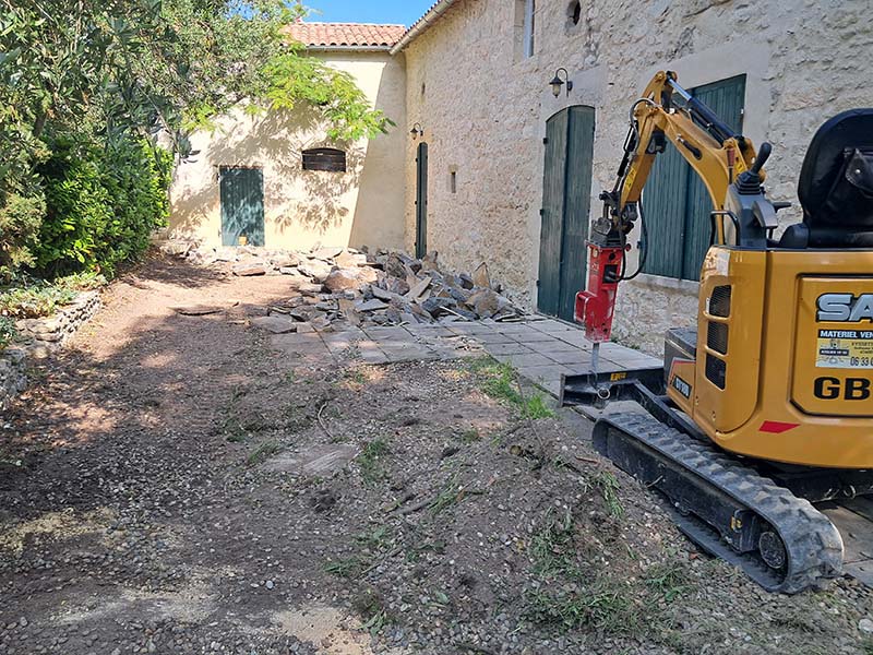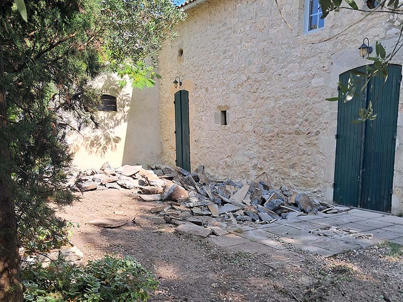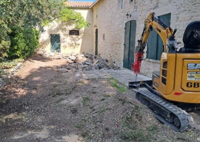 - Démolition de structures extérieures : Démolition de terrasses, murets, escaliers ou autres structures en béton.