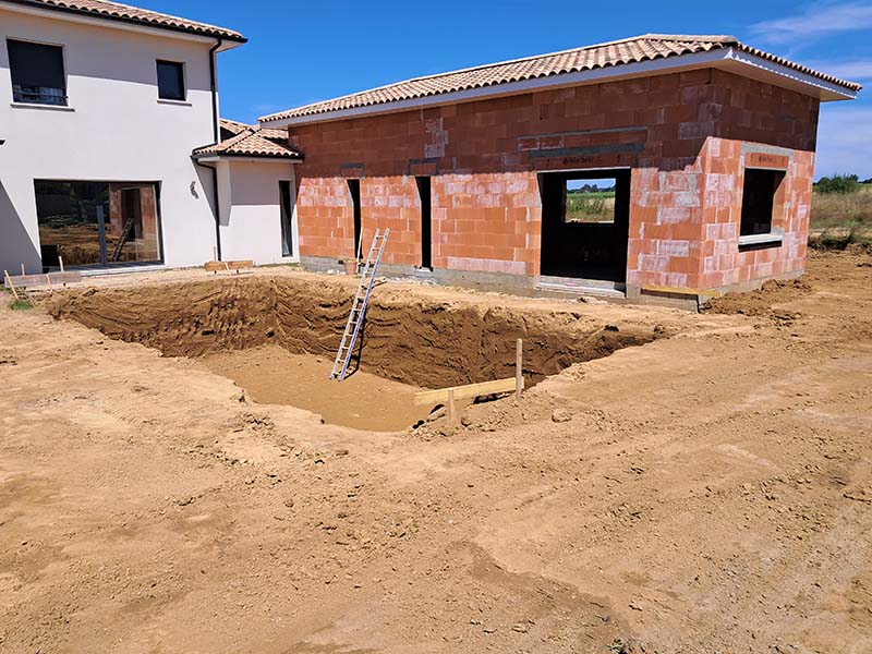 • Terrassement maison et piscine : Nous réalisons le décaissement nécessaire à la construction de votre future maison ou à la création d’un bassin de piscine.